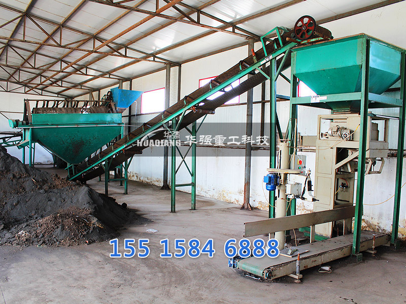 進(jìn)一步對(duì)堆肥成品進(jìn)行篩分,篩下物根據(jù)水分含量高低分別進(jìn)行處理。篩下物造粒后,送入由沼氣池沼氣供熱的烘干機(jī),進(jìn)行烘干,按比例添加中微量元素后攪拌混合后制成成品,進(jìn)行分裝,入庫待售。篩上物返回粉碎工序進(jìn)行回用。